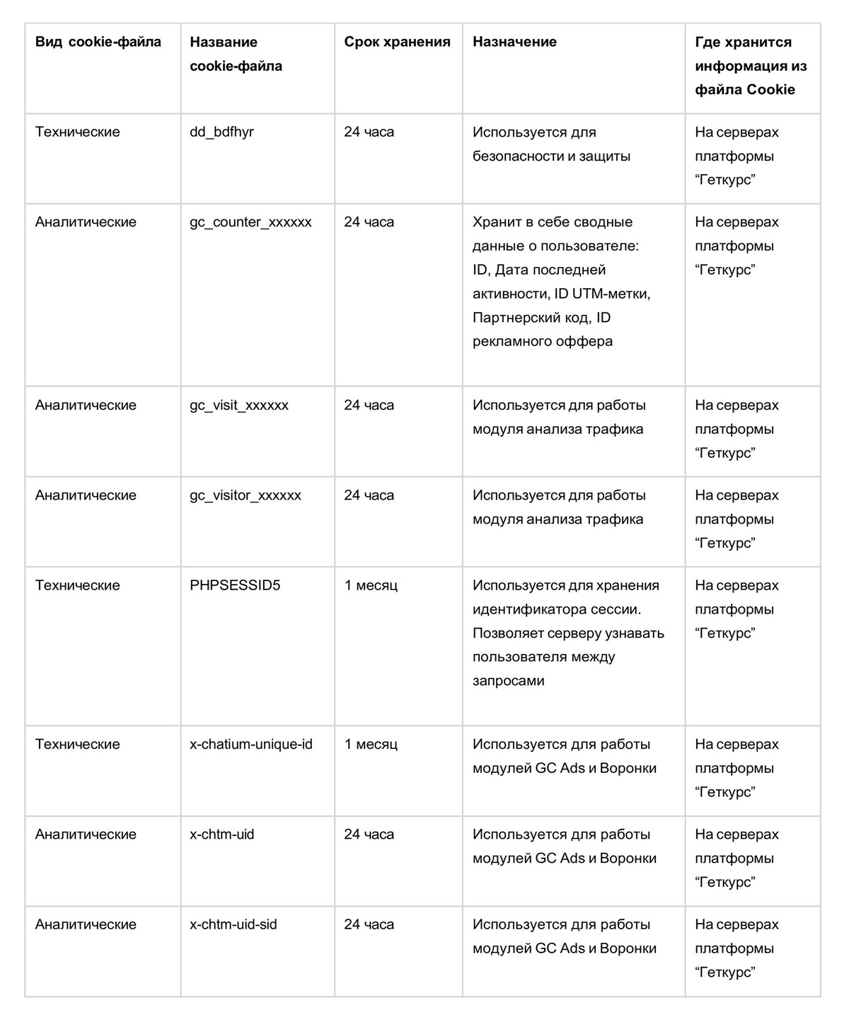 Cookie-файлы устанавливаются Платформой «Геткурс» согласно информации,
